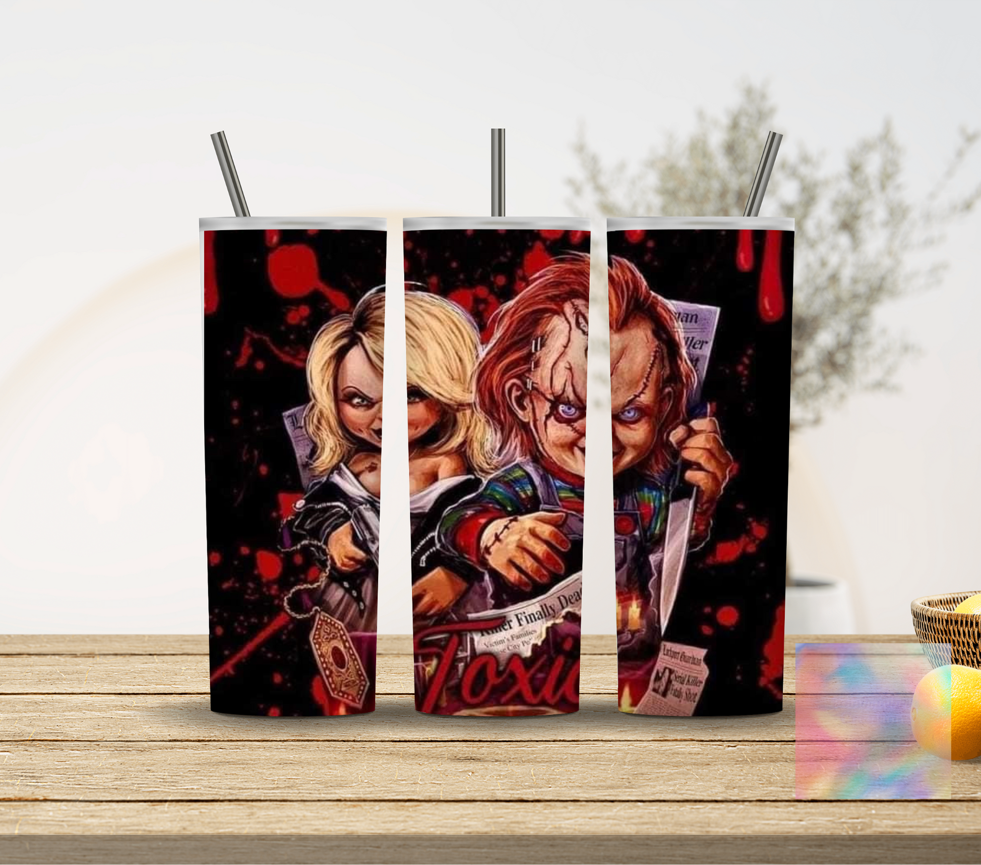 The Chucky & Tiff Toxic 20oz skinny tumbler is an ultra-durable, lightweight drinkware that helps keep beverages cold and hot. Its double-wall construction and vacuum insulation help ensure temperature stays the same for optimal drinking experience. Crafted with stainless steel, this tumbler is stylish, reusable and perfect for everyday use.