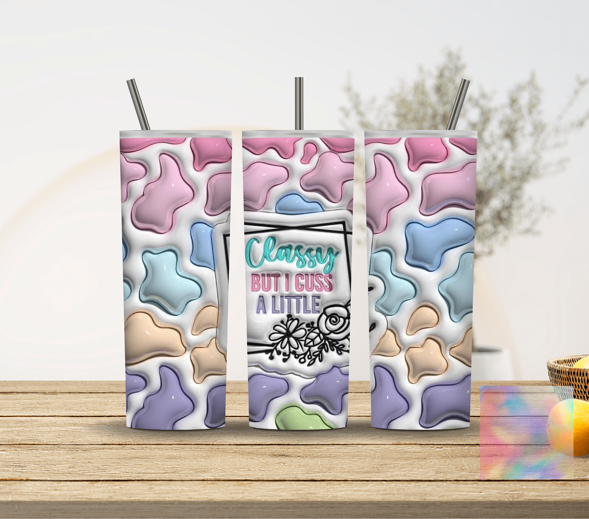 This 20 oz. Classy But I Cuss A Lil skinny tumbler is ideal for those who want to sip and swear in style. Stylish and durable, this tumbler offers the perfect balance of design and practicality. With its double-walled construction and vacuum insulation, it's sure to keep your favorite beverage at the perfect temperature for hours.