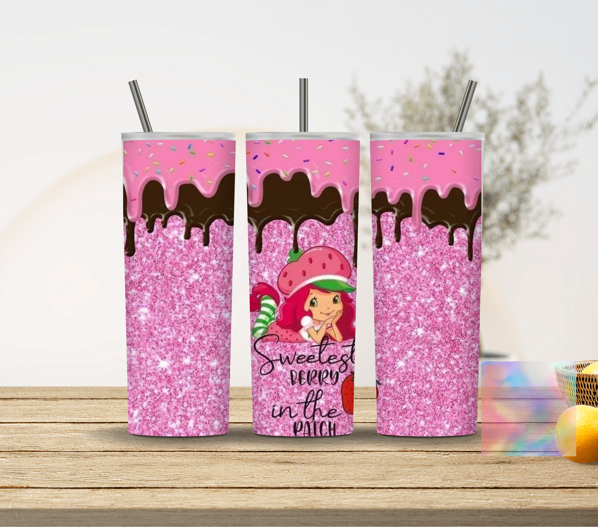 Keep your drink cool while also enjoying its flavor with this 20 oz Strawberry Shortcake Puff 1 skinny tumbler. Its insulated design will keep your drink at the ideal temperature for hours on end, perfect for hot summer days.