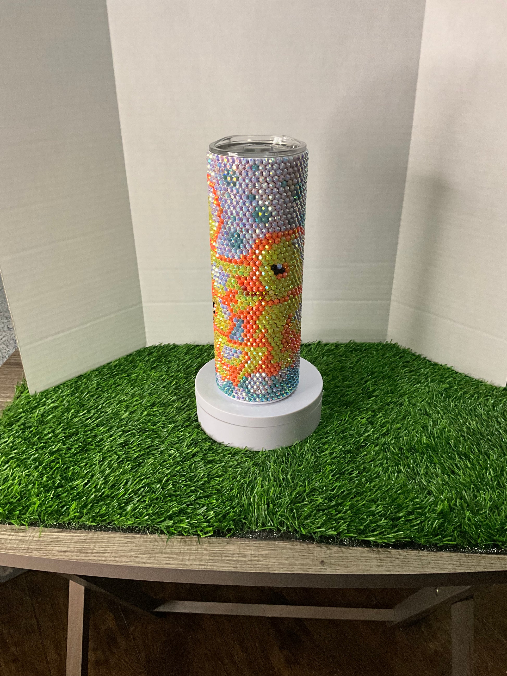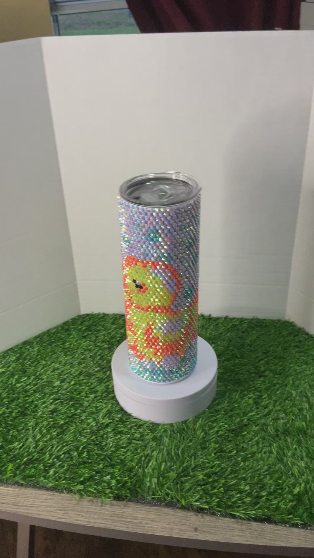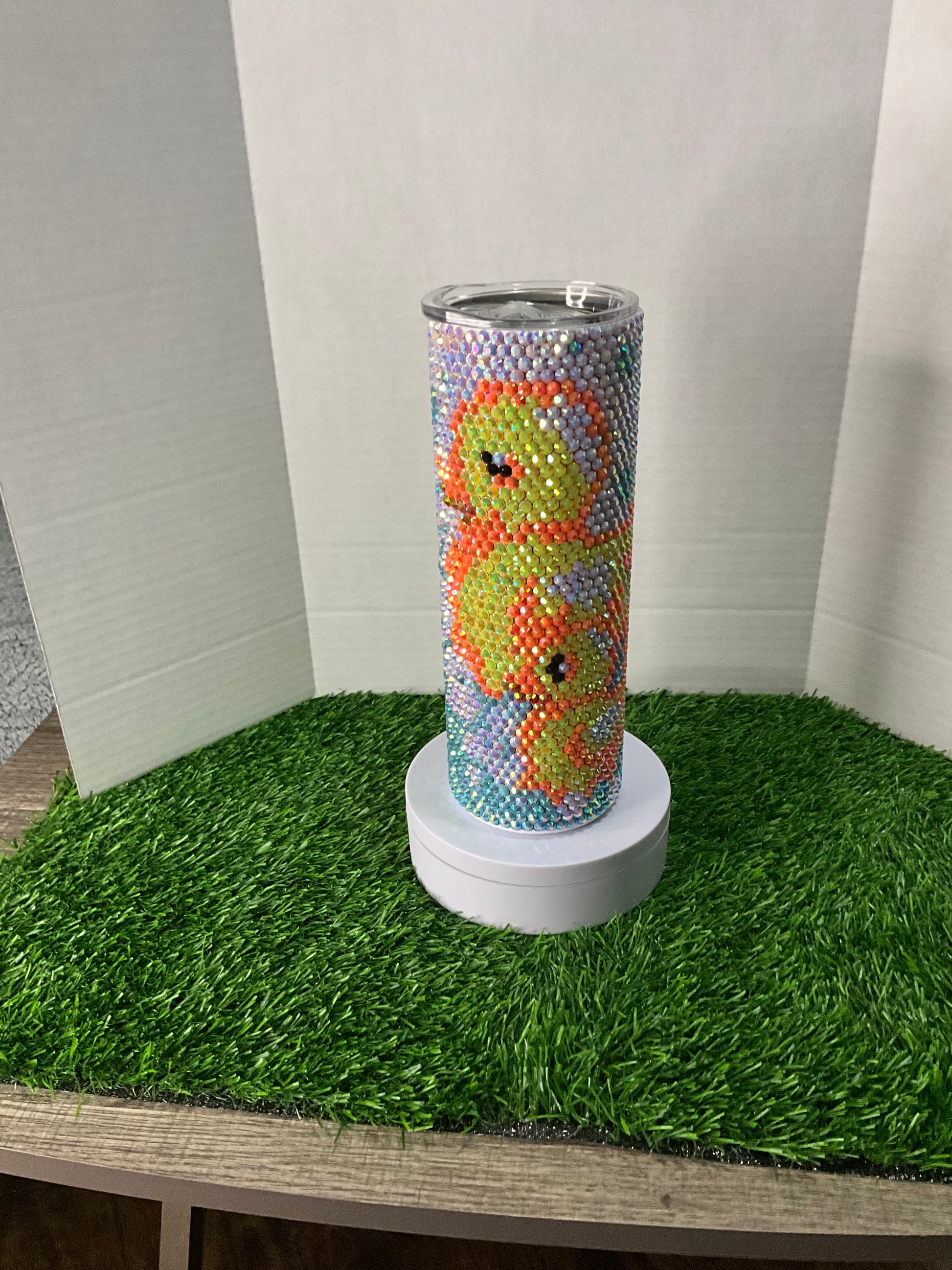 The Three Rubber Duckies Rhinestone 20oz skinny tumbler good for hot and cold beverages very very well!!!!! Comes with 2 straws and a lid and rubber bottom!!!!
